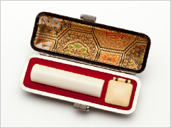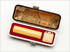 印章は一生モノ。きれいな印影を永く保つ丈夫な印材は、使えば使うほど愛着の湧く美しい印材を選びたいものです。横田印房では、永く大切に使っていただきたい為、材質は象牙・牛角・黒水牛・柘植の4種類の質が細密で堅牢な天然素材をおすすめしております。